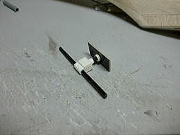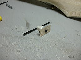 ● 頭がヘックスのインサート型レンチを差し込んで回すと、可動体が上下してガイドシャフトを動かします。水平尾翼にシャフト受けのパイプが埋め込んでありますので。後部の太いシャフトを軸に水平尾翼自体が上下に動き、取り付け角を変更します。この機能は本機の場合・・・まだ試作の段階なので、主翼と水平尾翼の位置関係が微妙な状態です。よって水平尾翼の取り付け角が決まれば、次回からは主翼はワンピースに戻せる訳です。本機の主翼は左右分けのツーピースですが、此れは色んな翼型の主翼と交換できるようにしました。翼型によっては水平尾翼の取り付け角が変わるからです。