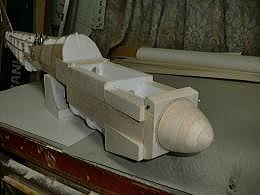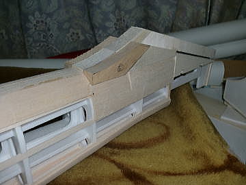● 加藤無線(MK)のF3Aのバルサキットを、大なり小なり組んだ事があるモデラーならお解りの筈・・・。機首周りってこんな感じでブロックを貼り込んで、思う存分カッターナイフで削り落とす構造・・・。少し削っては存分に眺めてにんまり・・・。自己満足の世界に存分に浸りながら更に削る進めて行く至福の時ですな。削ってるモデラーさんの頭の中では、もう機体が完成して華麗に飛んでいる筈です・・・。