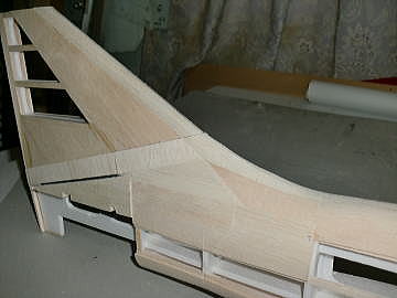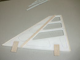 ● 垂直尾翼は完全対称翼です。中芯のスチレン材の両面にスチレンリブを貼り込んでバルサでプランクしています。スチレン世代のファンフライ愛好家からクレームが来そうですなあ・・・。スチレンの中芯なんだから、EPPシートを貼れよ!もっと軽くなるのに・・・って聞こえて来そうですな!。クルクル系ヒラヒラ系のアクロなら其れでも良いでしょうなあ・・・。機首を真上に向けての・・・。しかし本機は無動力なので其れは不可!その代りに王道のスーパーアクロが出来る機体なので、其方のクルクル系が好みです。縦八の字・・・横八の字・・・4ポイントロールにスプリットSターン、垂直上昇ロールやらダブルインメルマンターン・・・ローリングサークルなんかも出来るぞ!。其の為にはバルサでコーティングして、フィルムを貼ろうか・・・それともシルクを貼ってウレタン鏡面仕上げにするか・・・今から楽しみですなあ・・・。重過ぎるのは良くないが・・・適度に重い機体の方がスピードは出るので、ある意味飛ばし易くなります。