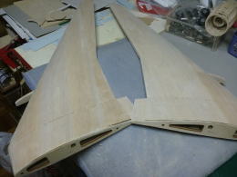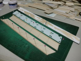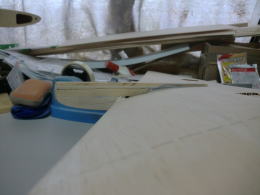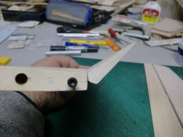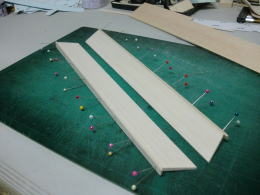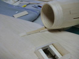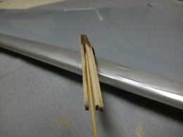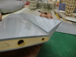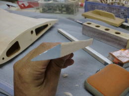 ● 水平尾翼のプランクシートをカンナで削るなんて・・・初めての経験ですなあ・・・。元来、プランクシートにフカフカのソフトバルサの3mmなんか使う方が可笑しいですなあ・・・。曲がり難い厚めのシートを無理やり接着剤で貼り込んで、治具に固定したんだろうけど・・・骨組み自体の精度が狂ってんだもの・・・そら!全体が狂うだろうし・・・。其れに気づかないって事は、此れを作った作業員は飛行機の知識なんか全く無いパートのおばちゃんか?・・・お小遣い稼ぎの知識の無い子供達に、親が作らせたって所かなあ・・・。綺麗に削ると定規とプランク面に隙間が無くなりますし、後縁側は翼端側に沿って薄くなるテーパー状に成ります。此れが本来の良品状態です。初心者には組めません・・・って言うか!、修正して良品にすれば初心者でも組めますよ!にセールス文章を書き換えた方が良いんじゃないか?・・・。で!修正するのは誰か・・・決まってるでしょうが!販売元の管理人さんですがね(笑)・・・。其れが筋ってもんでしょう・・・。