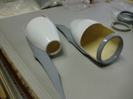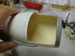● 付属のFRP製のエンジンポッドなんだが、広告には直径が70mm有るから70のDFがピッタリ収まるとある・・・。しかし自重が5キロを超えるので、6セル(22,2V)を推奨とも記載してあるんだが・・・。どう考えたって70mmダクトは収まらない・・・。70mmとは通常ダクトの内側の直径だから、ユニット本体の外径はダクトの肉厚分がプラスされるので、物理的に収まりません。問題は他にもある・・・。エンジンポッドの後部が直径30mmしかないんだが、此処まで絞っては6セルバッテリーを使っても、推力は半分以下に落ちてしまう・・・。この管理人さんの真意は何処にあるのか疑問に成ってくるんですなあ・・・。
