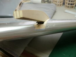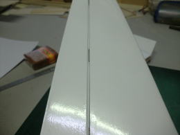 ● フィルムを貼った左右分割の水平尾翼・・・一見したら良品に見えるでしょう?・・・。さて!その実態は・・・まず!翼端側のエレベータの厚みが左右で違う・・・翼根側で歪な段差が出来る・・・水平尾翼の中央が高いって事は?・・・この水平尾翼のリブは相似形では無いって事なんですなあ・・・。なのに、エレベータ材はテーパーエレベーター・・・。ほんと!何処を検品したって言うのかなあ・・・。