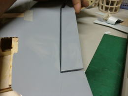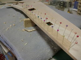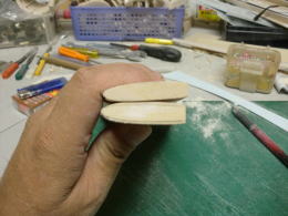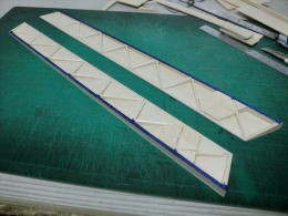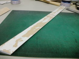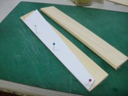 ● さて!・・・水平尾翼の修復に入って、やっと出来たと思ったら・・・新たな刺客が・・・。水平尾翼のテーパー比率自体が狂ってましたなあ・・・。この水平尾翼の翼根側の翼弦は170mmです。最大翼厚は17mmなので10%翼です。さあ!次は翼端側・・・相似形のリブなら翼弦は70mm最大翼厚は10%なので7mmの筈が10,5mmも有ったんですなあ・・・最大翼厚15%?・・・考えられませんなあ!・・・。翼端の方が厚い翼型なんて・・・。