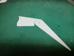 ● 画像はフラップ材・・・。フィルムによるトップヒンジなのは良いんだが、部品を好い加減に製材してフィルムを貼って取り付けているから、フラップアップは出来るんだが・・・フラップダウンが出来ません。ヒンジラインが何故にカーブしてるのか?・・・。トップヒンジなんだから直線もしくは凹んでれば誤魔化せたのになあ・・・。これじゃあフラップは下がらんでしょうなあ・・・。ヒンジラインをスムーズに動かしたい・・・。フラップの前縁を丸く削った状態で!って言うんなら、右端の画像みたいにすれば良いんじゃないだろうか。造りは複雑なので多分・・・中華の職人は採用せんじゃろうなあ・・・。