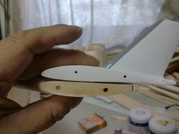 ● 結局・・・ウィングレットチップも作り直しです。本機のスケールチックなウィングチップから、模型機では実績のある形状へと変更しました。主にグランドサーマル系の大型グライダーに使ってますけど、誘導効力を減らせるので結局は空気抵抗が軽減します。削り出すのが面倒臭いのが難点・・・。フィルムを貼れない事もないんですが、此処は一発!ポリ樹脂を直接染み込ませて表面を硬化させ、推力がモーターなのでラッカー塗装で仕上げます。傷が入ったらサンドペーパーで段差を消して、再度缶スプレーでも塗装出来ますしね。