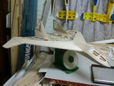 ● 劇中戦闘機が所属する国際レガシー飛行隊は、地球防衛軍のトップガン集団です。その機体の垂直尾翼は主翼の上反角に合わせて内側に傾斜しています。この傾斜角なんですが・・・劇中戦闘機の動画を静止画として、角度を分度器で測って決めました。映画の公開は2016年でしたが、本機製作は2018年・・・。そして新たな記事を書いている2020年現在・・・新たなる本機の三型機を設定し直して新作を作る予定です。