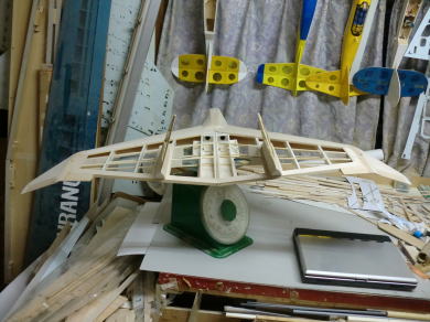 ● 内部構造にスチレン材を使うのは、構造体自体が捻じれ難い利点と、比較的軽量ながら頑丈な構造物に出来るからです。此れが昭和40年代から50年代なら、こういうスチレンシートは専門業者の特販ルートでなければ購入不可能でした。ネットが普及してからですよ、スチレン材が個人でも購入可能に成ったのって・・・。昔のラジコン技術誌のマニアの作品コーナーに登場するなら、厚みのある発泡スチロールのブロックを、専門業者から分けて貰って其れを削ってバルサでプランクして・・・って感じの記事だったんですが、そもそも記事を観ている一般のモデラーが、おいそれと手に入れられる環境でも無いので・・・殆ど実現不可能だったんですけどね。