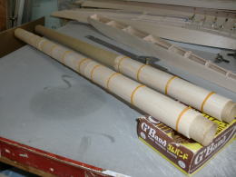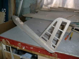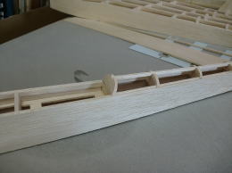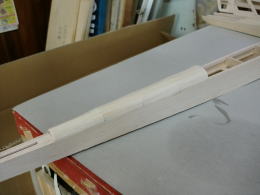 ● 後部胴体に嵌めこんだ水平のパネルの溝は、垂直安定板(バーチカル)の下部がはめ込まれますが、両側から角棒を接着して丸く削り・・・垂直安定板を安定させる補強板と成ります。生地の状態で調整し、フィルムで被覆後に接着剤を塗ってはめ込み固定します。垂直尾翼は言葉の通りに胴体に対して垂直の成らないと飛行する左右方向にクセが出ます。如何にこの垂直尾翼を正確に取り付けるかが、飛行機組立ての重要な決まり事とも言えますなあ・・・。