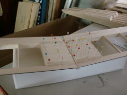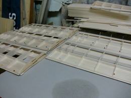 ● 右側の画像を見て・・・何も感じないモデラーの目ん玉は節穴ですぜい!・・・。内冶具の構造体を組んだ時に、こんなにメカ室は広かったですかね?・・・。要するに、この内冶具の構造体・・・メカを積む為に、カッターナイフで削り取ってしまいました。通りで内部側板にスパーの本数が多いと思った!・・・って気付いた人のみ、この内治具構造体を全てバルサで構成した理由が解ってもらえた筈です・・・。削るの楽ですぜい(笑)・・・。