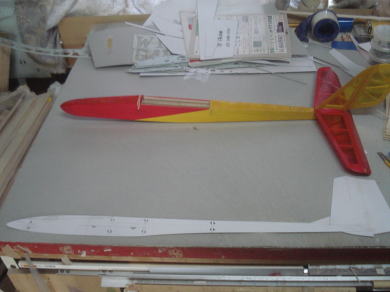 ● 本来・・・このケストレルバージョンは、同クラスの機体が主翼のみ生き残った場合・・・その使い回しの為に、胴体と尾翼のみのセットとして量産し販売していました。元々・・・ハンドランチ系の軽量バルサキットのグライダーキットには、T型尾翼は有りませんでした。理由はただ一つ・・・テールヘビーに成り易いからです。軽量構造の水平尾翼を、胴体の最後尾に取り付けるのも難しい軽量グライダーなのに、垂直尾翼の上に取り付けてリンケージをどう配線させるのか?・・・等、かなり複雑に成るんです。