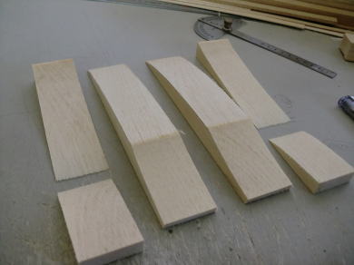 ● ステルス機の様な六角胴枠配置で無く・・・そろばん玉みたいな配置の六角胴枠なので、自立させる事が出来ません。専用のキールフレームを挟んで固定出来る台座を作りました。此れで数か所のキールフレームを挟むと自立出来ますし、この台座を二本のアングル材で挟んで直線を出すと、キールフレームも直線に成ります。六角胴体の基本なんですが、隣り合わせの四面をプランクすると・・・意図的に捻じらない限り、最初の形状を完全にキープします。よって治具を使うのは、外皮四面の貼り込みまで・・・残りの面は、治具無しでも貼り込めます。