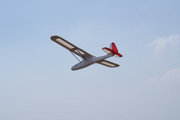 ● さて・・・推力装置が本機に備わっていたらどうなるのか・・・。本機の主翼はフラットボトム翼型なので、下面は平ら・・・上面のみしか揚力は発生しません。無動力だからこの飛行ですけど、推力マックスで速度が上がると・・・機首上げ状態で上昇飛行が始まります。推力を加減して水平飛行に移行しても、機首を上げたまま水平飛行するのでカッコ悪い・・・。フラットボトム系の翼型を持った飛行機は、推力線のダウンスラストを多めに入れるのはその為ですよ。しかし・・・昨今のモグラさんは、最初からフラットボトムの浮きの良過ぎる翼型から、半対称類似翼で浮きを抑える翼型を採用するでしょう?・・・。此れはですなあ・・・推力線のダウンスラストを少なくする意味も有る・・・。機首先端のスピンナーとプロペラが、明らかに下向いてたらカッコ悪いですよね。