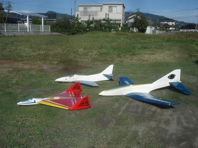 ● 上記の機体は昭和48年・埼玉の山本昇氏が設計された「ヴェガシリーズ」です。この機体の真の性能を探るべくX-11型とX-14型を其々完全コピーして飛ばしてみました。ところが山本氏も製作記事で述べておられたのですが、自分の手には負えない位の高性能機・・・スピードが出過ぎる、舵の反応が早過ぎる・・・結局クラブのアクロバット大好きのメンバーさんにお任せ〜。後方に見えるX-13型は二機の性能を基に今の自分の飛行技術に見合う能力を持つ機体に仕上げてある「VEGA-U」です。あの大御所と言われた山本氏でもそういう時代を経験しておられました。私自身も同じところで壁にぶつかり悩み続けてある日光明が射した時・・・、自分のスタイルが決定しました。