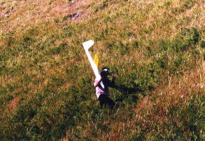 ● 昭和54年当時のスロープエリアには現在の様な、無秩序な迷惑パラメンバーなんて一人も居ませんでした。と言うよりもハンググライダーのメンバーはいましたが、パラグライダーのマニアなんて一人も居なかった時代です。上官の薦めで中古のハンググライダーを譲ってもらい・・・、小高い丘からの数分間のフライトは楽しめました。八面山やロマンスヶ丘はとても懐かしいサイトです。パラグライダーよりも翼面荷重の大きいハンググライダーですので、ラジコングライダーを先に飛ばしてサーマルポイントの確認をしたり、不時着したら空から捜索してもらったり、石ころ詰めた色鮮やかな布製投下物を落としてもらいながら、其れを目指して捜索したりと何時もハンググライダーメンバーと楽しくセットで楽しんだ、休日のスロープサイトでした。