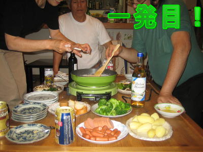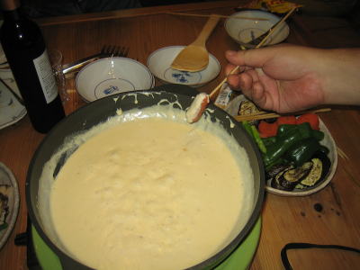 ● ガルウイング工作室の企画会議には、必ずお楽しみ三点セットが付いてきます。初日の飛行会・温泉スパでの入浴会・そして趣向を凝らした食事会です。毎回・・・とりあえず・・・会場と成る大御所宅の奥様と相談をするんですが、今回はお部屋の中での食事会をと決まりました。そんで〜?何をしましょうか?となったんですが・・・、イザ!となると良いアイデアが出ません。奥様曰く・・・「いっその事・・・闇鍋でもやったら?。」と提案されたんですが、そんなら喰えれば良いか!と、軽く判断して即日決定!・・・。夜も冷える季節だし・・・チーズフォンデュでもどうでしょうか?と奥様に聞いたら・・・、「トンビ君!あなた洒落たお料理知ってるのねえ〜・・・。顔に似合わず・・・。」・・・奥様に言われたら言い返せない私なんですが、敢えて闇鍋・・・何が出て来るのか!美味しいチーズフォンデュを目指してその日まで・・・、ネットサーファーで波乗りの毎日でした。
